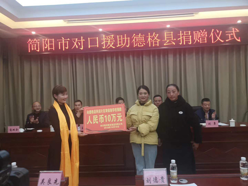 簡陽市對(duì)口援助德格縣捐贈(zèng)人民幣10萬元